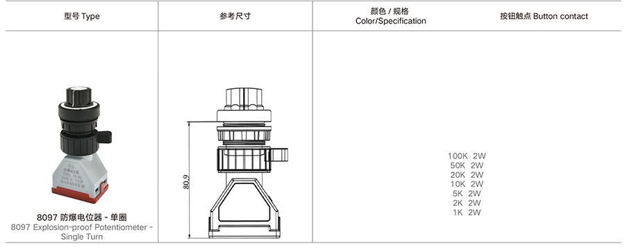 8097-2 金属 ( 不锈钢 ) 隔爆防爆控制旋钮