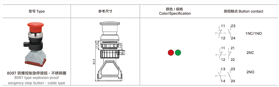 8097 防爆控制按钮 - 不锈钢圈