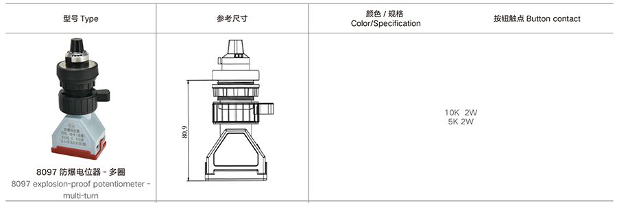 8097 防爆金属电位器 - 单圈