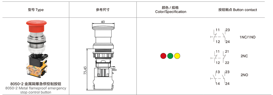 8050-2-2 金属 ( 不锈钢 ) 隔爆控制按钮