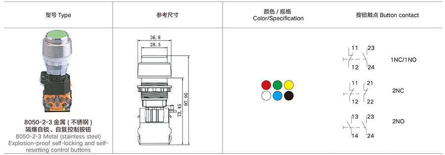 8050-2-2 金属 ( 不锈钢 ) 隔爆控制按钮