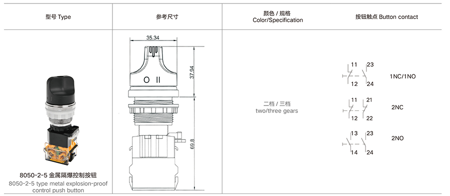8050-2-2 金属 ( 不锈钢 ) 隔爆控制按钮