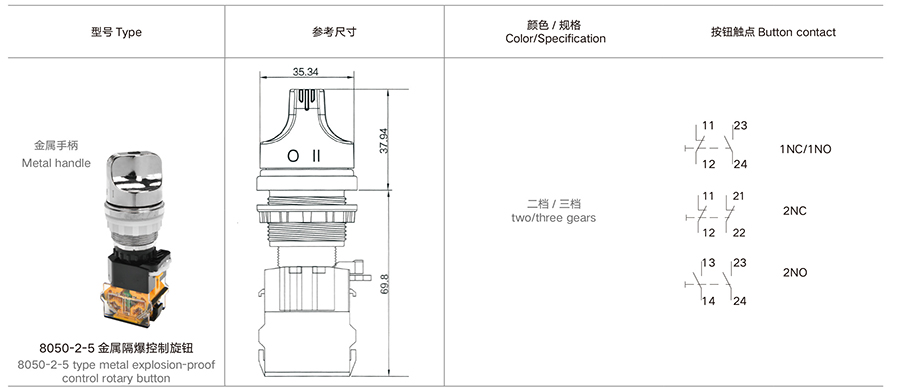 8050-2-2 金属 ( 不锈钢 ) 隔爆控制按钮